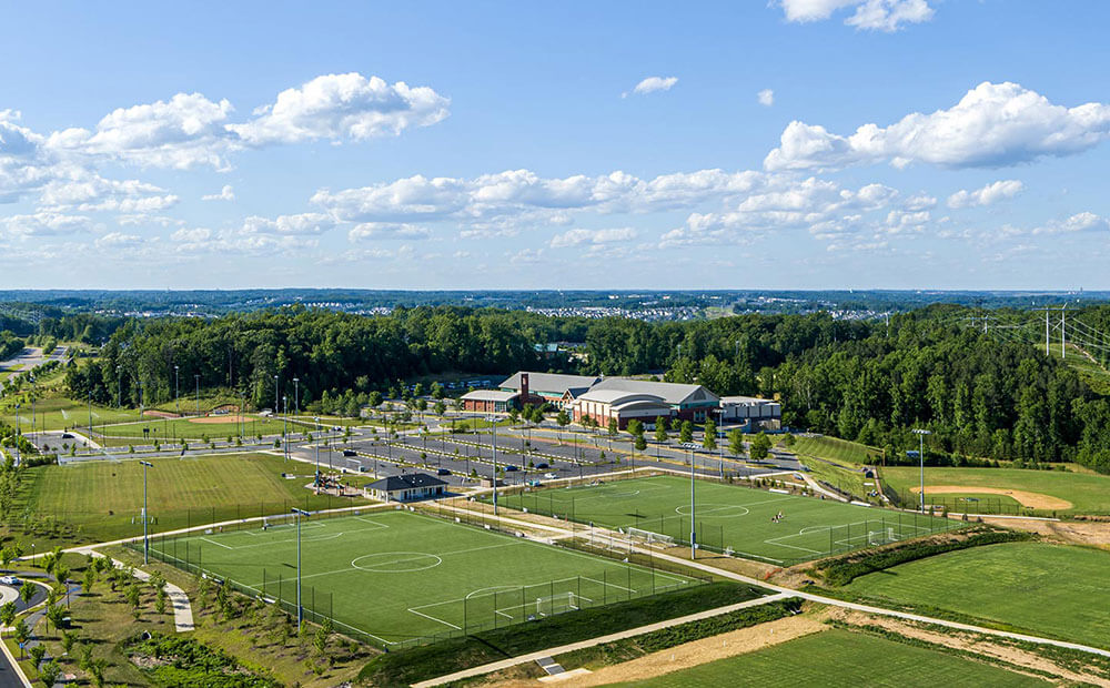 In a word, this hometown is happening. Our on-site amenities include the Shores Club with three swimming pools, Fitness Barn, Social Barn, Kids Club, Demonstration Kitchen and Community Garden. There’s also our Woods Rec Center, Jack Nicklaus Signature Golf Course and our renowned 30-acre Ali Krieger Sports Complex. And more’s on the way, including our walkable Marketplace retail district with a VRE train station, and a second elementary school.